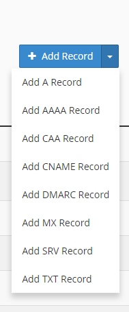 4. Click the drop down marker next to "Add Record" and select the type of DNS record you want to add.