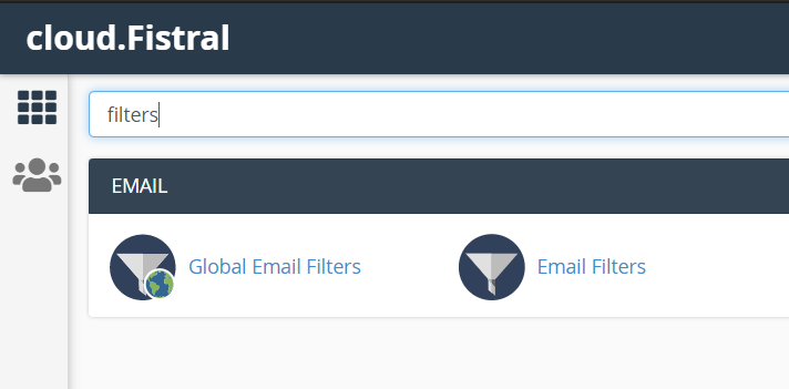 2. Locate the Email Filters or Global Email Filters section. You can do this by using the find field in the left pane, when you start to type "filters" it will appear.