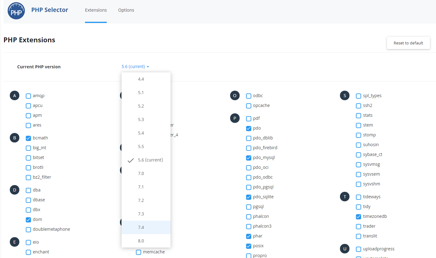 When you are ready use the drop-down menu which will show all the available PHP versions, select the version you require and click “Set as current” then Save.