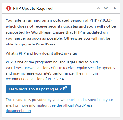 Has your WordPress website prompted you to update your PHP version? Showing a message like this: