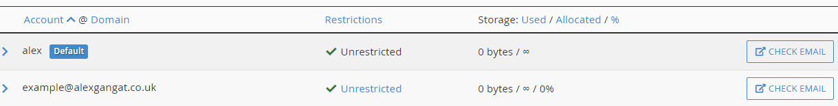 5. That's it! Your email account has now been created. A very quick way to access that mail account you just created is to click “CHECK EMAIL” on the far right on the email table. This will take you into that specific mailbox without the need to login.