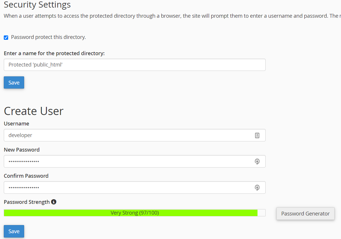 5. The final step is to choose a username and password in order to access your website now it has been password protected