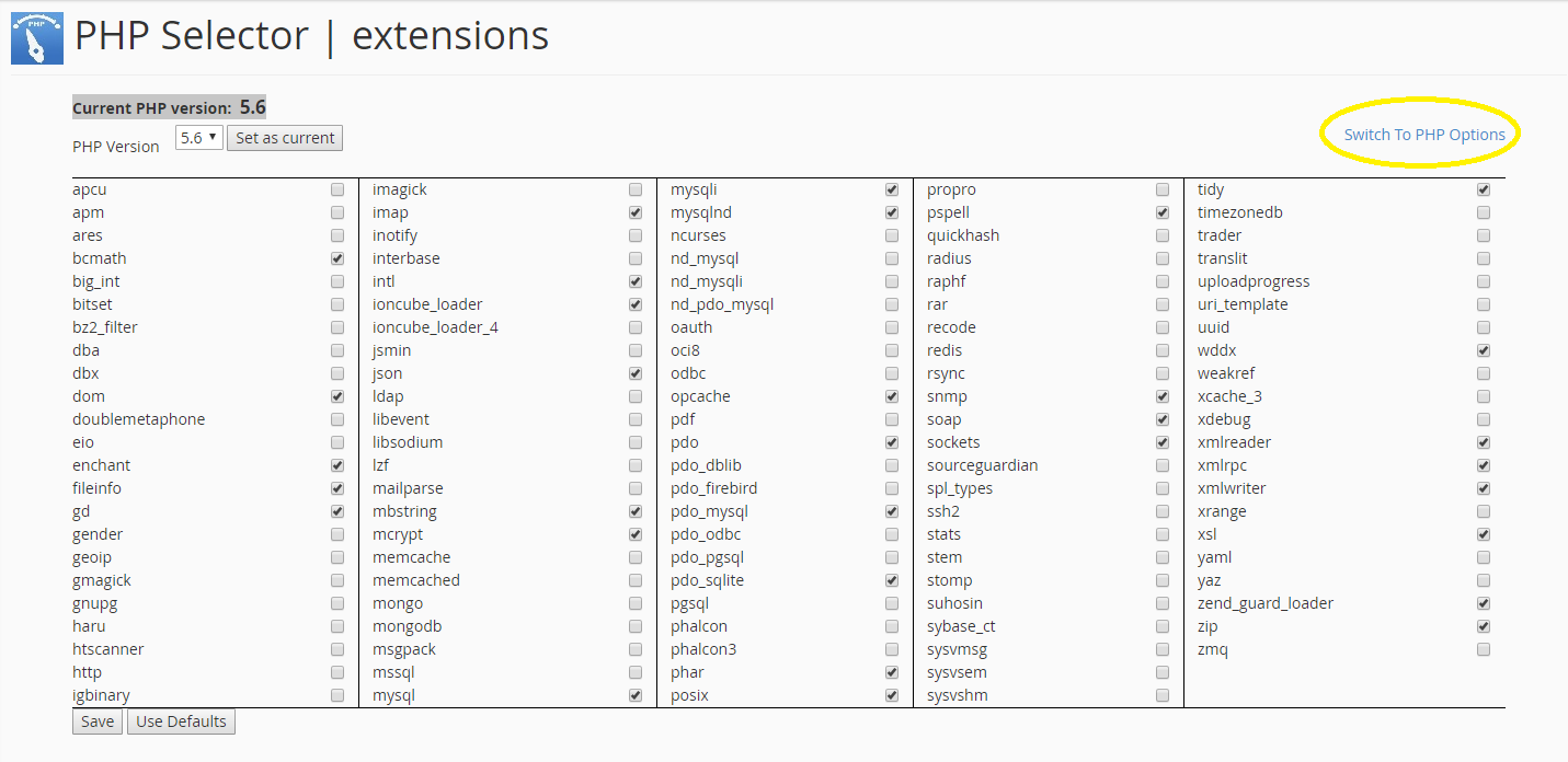 3. Click Switch To PHP Options.
