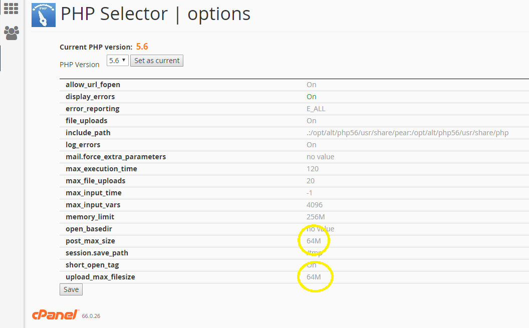 5. You have will have successfully increased or restricted your maximum upload size. You may encounter problems if the max upload is over 500mb, if you do run into any issues please email support@cloudabove.com.