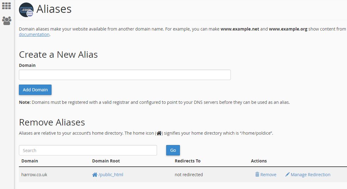 This guide will show you how to point one domain to another, for example if your main website is on www.mywebsiteisfantastic.com, but you’ve purchased a new domain name called www.mywebsiteisgreat.com and would like it to automatically redirect the visitor to www.mywebsiteisfantastic.com, this guide will show you how to do just that.