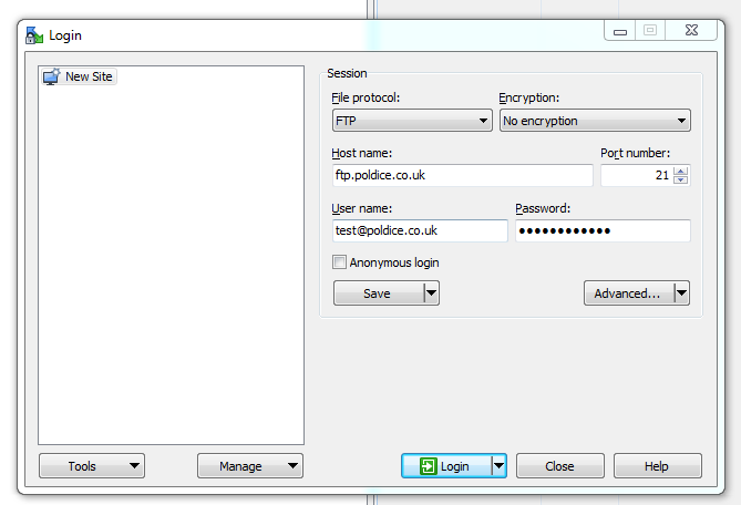 2. Please open WinSCP and make sure the File protocol is set to FTP then enter in the connection details: